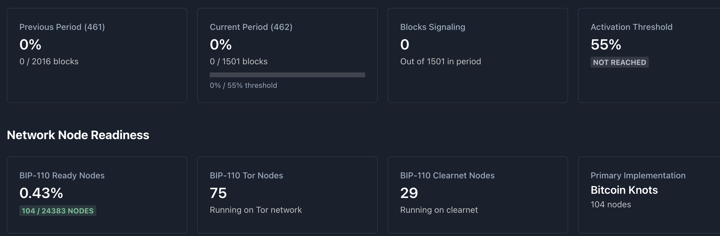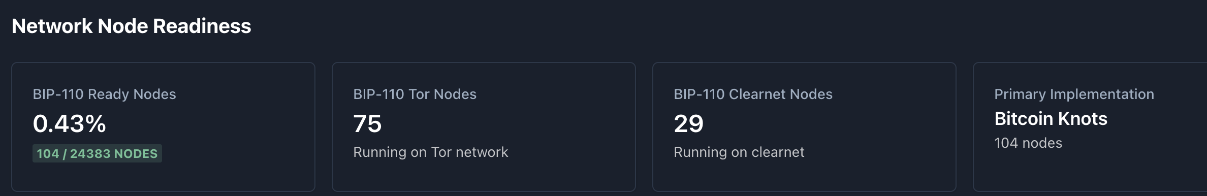 I’ve added BIP-110 monitoring to The Bitcoin Portal: https://thebitcoinportal.com/nodes/bip110